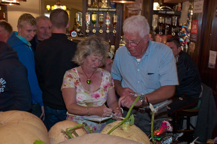 A great turnout for this years growing competition. We had over 20 pumpkins submitted for the event. The judging criteria was weight and girth! Len and Jean won the overall weight prize at about 28kgs and Pete the Plumber and Lou Munday won the prize in the girth category. There was also a prize for the prettiest pumpkin but due to my tardiness I have forgotten who won, please let me know and I will amend the post accordingly.